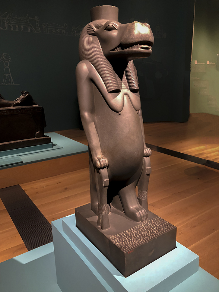 Hippo IMG_5738 Published July 29, 2018 at 726 × 968 in The Sunken Cities of Egypt ← Previous / Next → The goddess Tawaret, portrayed as a hippo; St. Louis Museum of Art The goddess Tawaret, protector of Isis and Osiris, at the exhibition of Egypt’s Sunken Cities of Thonis-Heracleion, St. Louis Museum of Art.