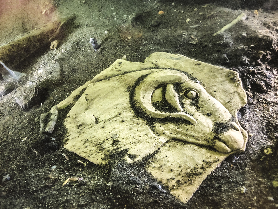 A slab engraved with the ram’s head, depicting Amun, the patron god of Thonis-Heracleion, part of the exhibition of the Sunken Cities of Egypt at the St. Louis Museum of Art.